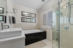 The home comprises three well-proportioned bedrooms, including a generous master suite complete with a quality-appointed ensuite and excellent wardrobe storage. A spacious central bathroom showcases premium finishes and upgrades, further enhancing the sense of comfort and sophistication throughout.